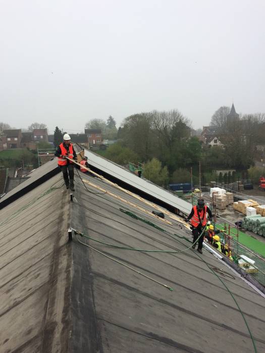 Toiture verte réalisée en sous-traitance avec notre fournisseur sur le nouveau complexe hôtelier du Zoo de Pairi Daiza.